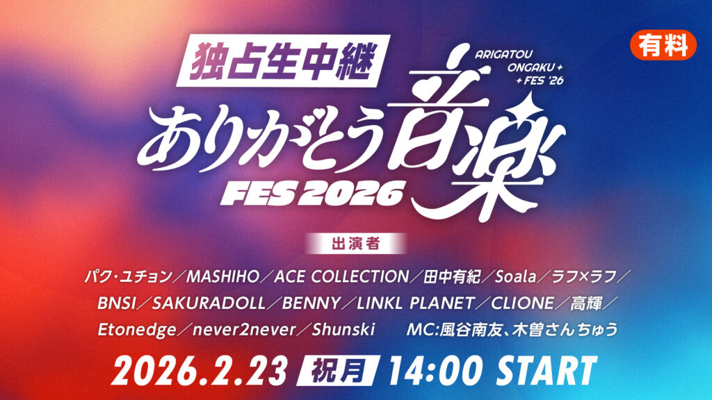 「ありがとう音楽FES 2026」が、ニコニコ生放送にて配信決定!